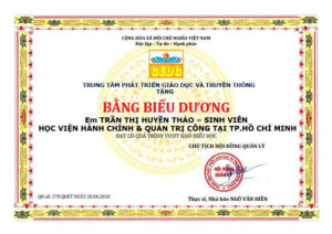 Trung tâm CEDC khen thưởng tặng sinh viên Trần Thị Huyền Thảo máy tính laptop